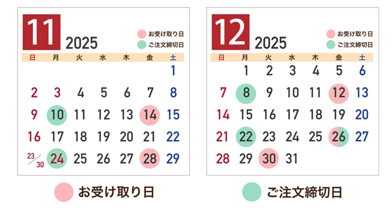 ※カレンダー上のお受け取り日以外は商品がご用意できません。
